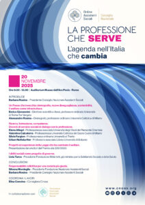 “Un welfare senza servizio sociale è un welfare senza radici pubbliche. La prossimità, oggi tanto evocata, non è una parola simbolica: è una pratica istituzionale che richiede competenze, organizzazione, cooperazione tra livelli di governo e fiducia tra cittadini e istituzioni. E i diritti alla cura, alla casa, all’autonomia, alla protezione non sono politiche accessorie: sono diritti di cittadinanza che definiscono la qualità democratica del Paese. È su questi temi che il Consiglio Nazionale dell’Ordine degli Assistenti Sociali e la Fondazione Nazionale Assistenti Sociali promuovono due giorni di lavoro, il 19 e 20 novembre all’Ara Pacis di Roma. Due giornate per confrontarsi sul presente e sul futuro della professione, ma anche sul ruolo del welfare pubblico in questa nostra Italia. Chiamiamo ministri – a partire dalla responsabile del Lavoro e delle politiche sociali, Marina Calderone – studiosi – tra gli altri, Enrico Giovannini e Alessandro Rosina – parlamentari, perché noi a quelle basi della legge 328 crediamo fermamente. Chiamiamo Livia Turco, naturalmente perché ha saputo aprire un cantiere che dobbiamo ancora completare, ma che ha dato vita ad esperienze fondamentali – che premieremo – e che, nonostante le difficoltà, continua a generare competenze, idee e comunità”.