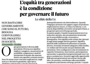 In questo quadro, l’equità tra generazioni non è un tema etico astratto, ma una questione strutturale per la sostenibilità sociale, economica e demografica. Non significa solo evitare che i giovani di oggi stiano peggio dei loro genitori. Significa metterli nelle condizioni di affrontare un mondo diverso, fornendo strumenti adeguati a sfide inedite.