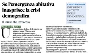 Se davvero volessimo rispondere alla crisi demografica dovremmo meglio agire su più leve in modo coerente: rafforzare la solidità e la qualità dei percorsi lavorativi; aumentare l’offerta di abitazioni accessibili, soprattutto nelle aree urbane ad alta domanda; garantire strumenti che armonizzino per entrambi i generi tempi di vita e di lavoro; gestire in modo positivo e lungimirante i flussi migratori; costruire un quadro di politiche stabili nel tempo, capace di generare fiducia.