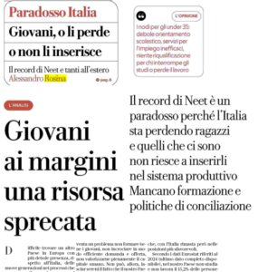 Difficile trovare un altro paese in Europa con più debole presenza, rispetto all’Italia, delle nuove generazioni nei processi che generano sviluppo e benessere nel proprio territorio.